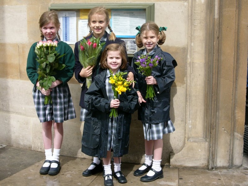 The gulls were, one and all, trying mightily to look a combination of dignified, proud, pious and well-behaved. The sight of over 100 gulls in their plaid dresses, knees crossed, hands folded, was so different from what our experience of school has ever been that I felt quite teary! Susan, Sophia’s mother, had gone out for lunch with me beforehand, and she said, “Bring on the tissues,” so we each clutched one just in case. Good thing, too, because once the organ began to play and the children to sing their “Little Latin Melody,” it was pretty touching. The senior choir, made up of Forms Five and Six, were remarkably accomplished (to use Jane Austen’s favorite phrase!), all singing in tune and with expression. Each group stood up to sing, and then sat down again in perfect unison, but no clapping! I am going to file an official objection. OK, it’s in a church. But to listen to all those four-year-old angelic voices singing “Hello, Mr Sun,” and not reward them with some applause was very hard! The English accents, too, and the pitch of their tones, and the sheer number of little people singing, made it very, very enjoyable and painfully sweet. I had heard Avery rehearsing the various songs many times over, and I have to confess I didn’t stop at any point to think that she was awfully cute. But Avery times 18 in an enormous historical church filled with flowers was very affecting. “This is a lovely wuhld…”