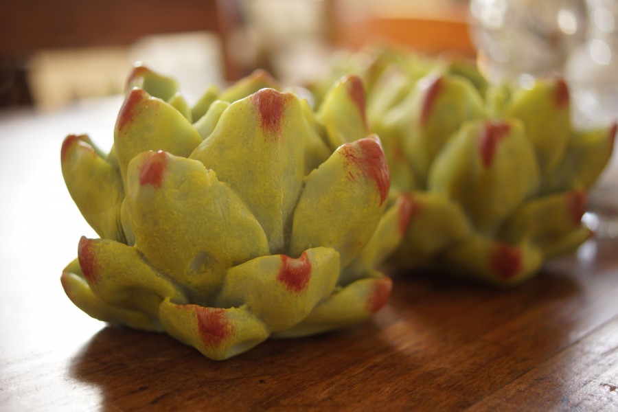 She’s one of those people who makes you cooler just by watching whatever you do and making it seem interesting. Chopping garlic! Setting the table! With my mother in law by my side, even the most boring tasks take on color because she’s so intensely fascinated by everything going on around her. And she gives wonderful gifts. These little artichoke candles are my new favorite possession.