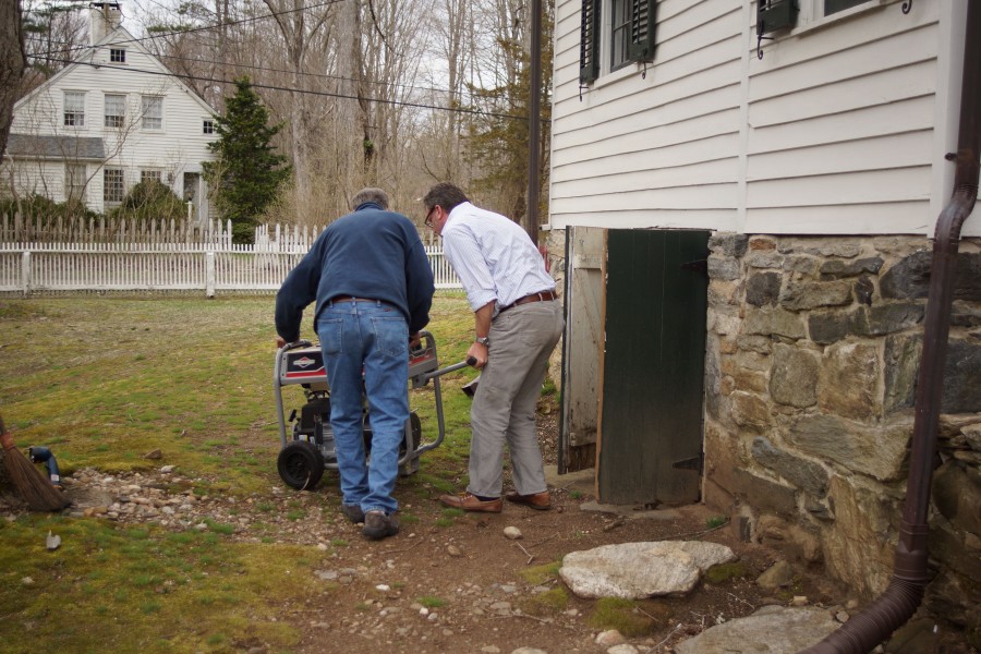And when everyone else finally did depart, Rollie stayed behind to help John set up the generator, since as city folk we could not possibly go more than two hours without the internet! They entered the feared and cobweb-festooned crawl space to emerge with the magic source of energy.