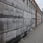 Dog caressed, snacks bought, we hopped on the vaporetto and headed to the cemetery island of San Michele. Yes, there really is an island that is nothing but the final resting place of many, many Venetians. Simply miles, as far as the eye can see, of marble walls, not deep enough to contain a coffin or even, in some cases, an urn of ashes, but all covered with carved epitaphs, the names and dates of the deceased, and messages from loved ones, along the lines of “as much as we loved you on earth, the angels will love you now.” There was an entire Recinto dei Bambini, an area reserved for dead babies and children, which we had to turn away from, presently, because the Italian tradition is to place a permanent photograph on the gravestone, somehow fused with the marble. The images of tiny faces in christening gowns, or even sadder somehow, playing in a garden or sitting on a parent’s lap, were too much.