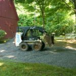 Friends indeed. What would we do without them? They smooth our driveways. Rollie came first thing the morning after I threw myself on his mercy, and as you see, smoothed everything out. He accepted a blueberry and raspberry pancake afterward and hung out at the picnic table, discussing with me the options as regards our windowsills, sadly in need of paint. “Why don’t let’s wait until John is here, to decide? He has that lawyerly sort of voice, if you know what I mean, not that he’s ever been a lawyer, but you know. People’ll listen to him.” Shoot, but not to me? Definitely not. Fair enough. Thank you, Rollie, for making my driveway driveable. I spent the rest of the day alternately rejoicing over it and finding bits I needed to shovel and rake to make it all straight, and can I tell you? Gravel is HEAVY. It likes to stay where it is. I hurt in muscles I never knew I had.