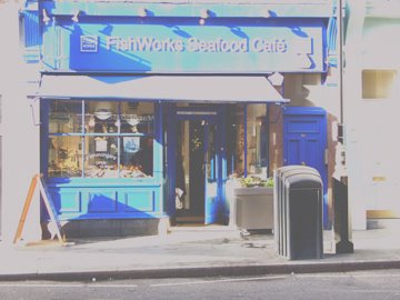 Then in the universal situation where you can’t go home because the cleaning lady’s there, I decided to get a haircut. The lovely Piero from Vincenza gave me a very nice pixie-ish (well, ageing pixie) cut for not too horrible a price, and then I had to kill some more time so I went grocery shopping of course, and decided what I reallly wanted for dinner was oyster stew. I don’t know why. Because I knew the oysters would be hard to find and it would give me a mission. So after two abortive attempts at supermarkets, I ended up at a fishmonger in the Marylebone High Street, London’s answer to… what… I don’t think there is anything like it in Manhattan. A true high street, winding along with lots of taxis and zebra crossings (don’t forget to pronounce zebra properly), with the requisite neighborhood-friendly shops (as opposed to tourist places), like a chemist’s, lots of pubs and tearooms, shoe repair, and a fishmonger! An impossibly quaint blue-fronted small shop with a front window that is removed upon the shop’s opening, and the fishes and shellfishes and seaweed sit on their beds of ice right in your face. Gorgeous! It’s called FishWorks and it’s of course very famous but I have never heard of it because my husband hates fish. Why? Many you have heard the inflammatory and entirely undeserved story of one slightly undercooked red snapper I produced roughly eleven years ago and he claims I was trying to kill him. There would be so many easier ways.