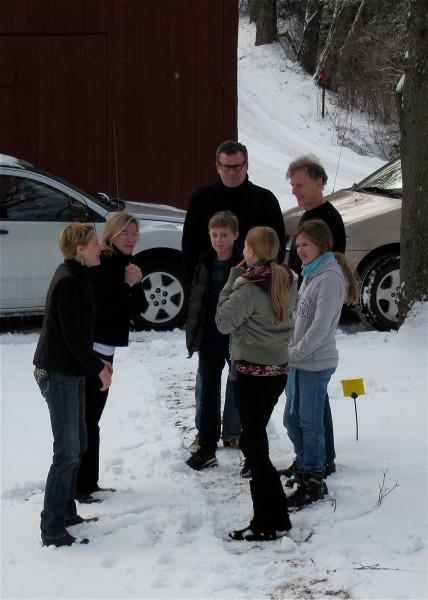 New Year’s Day found us sledding in the back meadow with an enthusiastic Avery and a terrified Kate: not terrified for herself, but for the loved ones she saw putting themselves in mortal danger as they hurtled down the bumpy hill. “Done! Mommy done, Dada done, Avery done!” The sun slanted on the shimmering, crisp snow and we all remarked on the landscape. “I love this view of your compound,” David said wryly, as we all surveyed the outbuildings. “Everything is falling down,” we agreed with no great degree of dismay. Somehow that seems all right, dark, weathered boards creaking under the weight of cracking glass and heavy snow. Weathered is the word for our whole property, here at Red Gate Farm.