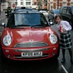 It’s here, it’s here! After dropping Avery off at school, feverish with the possibility that we could be Mini-ful by school pickup time, John and I hung around the HSBC bank in Oxford Street and withdrew a scary amount of cash, watched with avid curiosity by all the other people in the queue at the teller’s window. Wouldn’t you think they’d have the brains to do something like that in a private room, instead of counting it all out doggedly right before everyone’s eyes? We felt like Bonnie and Clyde. Happily, by the time our teller (who looked about 14 and as if his finger had got caught in a light socket, causing his hair both to stick up all over his head AND turn a greenish white) counted it all even the most tempted of would-be robbers had had to go on to whatever was meant to occupy their day, and we were able to stuff the envelope in John’s backpack, which immediately looked to both of us as if it were completely transparent, with a glowing wad of money inside for all to see.
