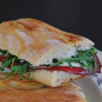 That’s all very well for me, in the dull month of March, to keep me occupied. And John’s had more than enough to contend with visiting dentists. Our entire household has been livened up in a very minor way by our acquisition of a “toastie machine,” which makes anything between two slices of bread a hot, chewy, glorious meal: buffalo mozzarella, bresaola, rocket and homemade pesto, as you see. Something to keep us entertained.